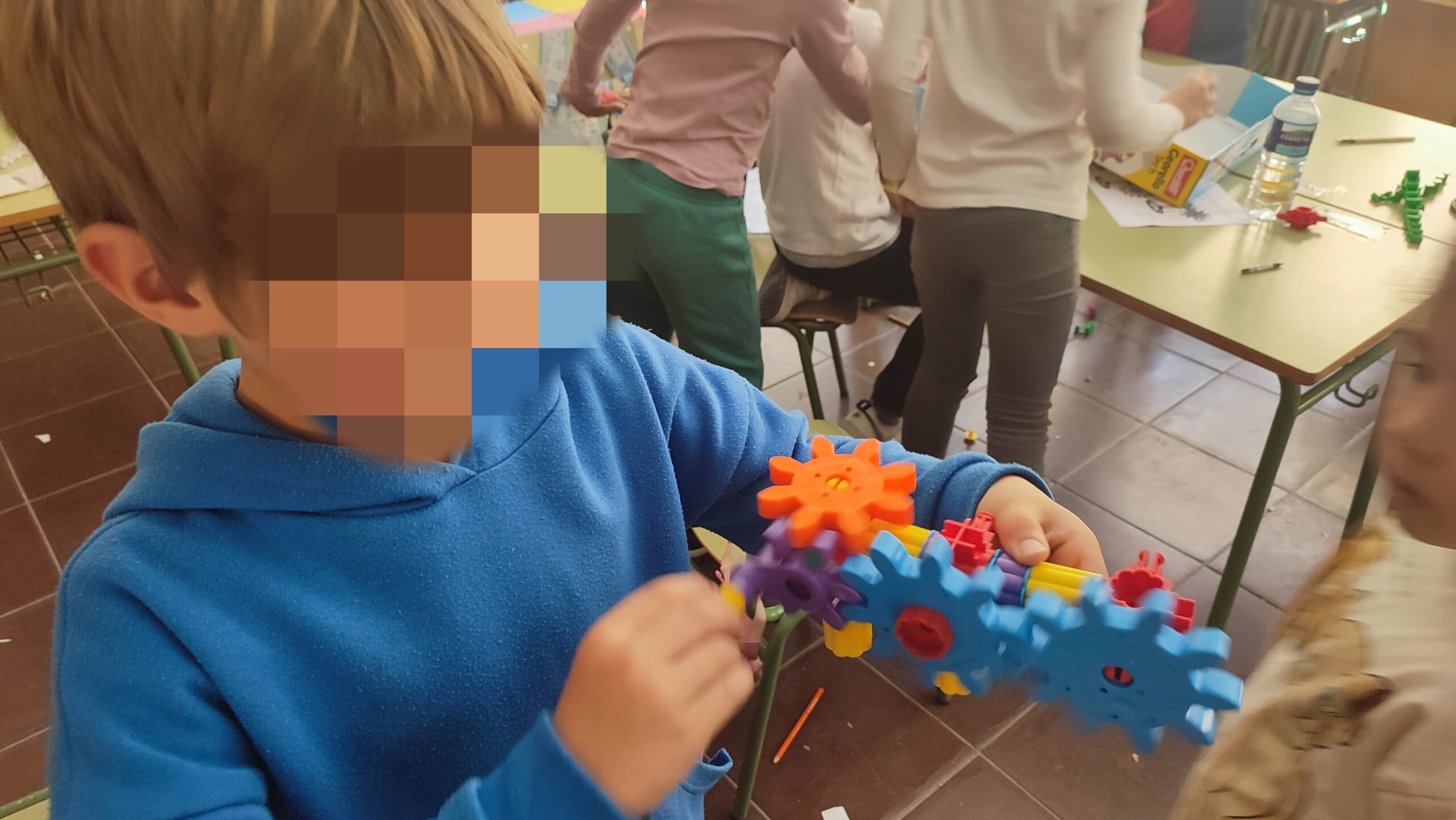 Alumnado haciendo retos en el aula de infantil.