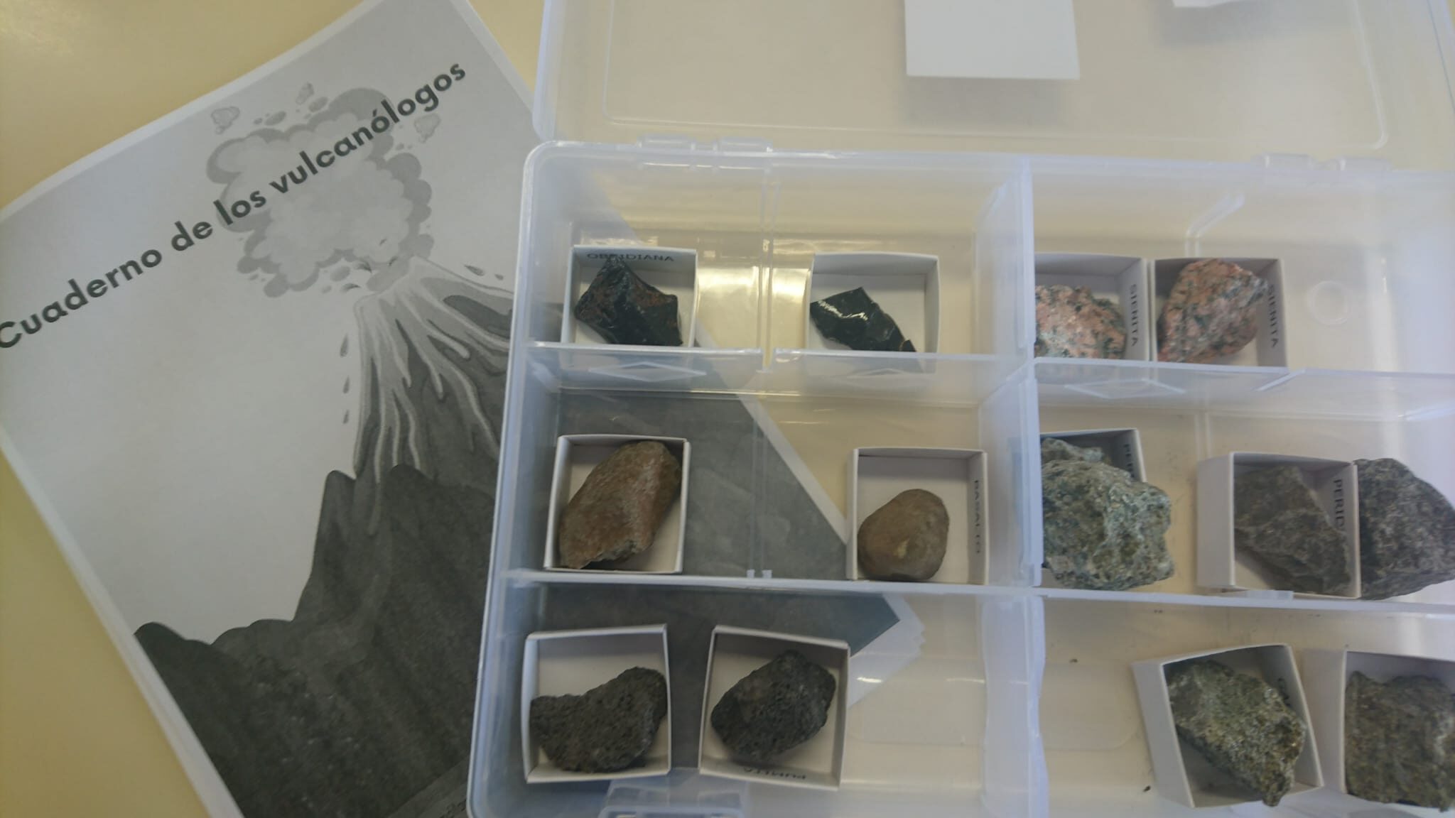 Texto de información al docente (con imágenes, contenido básico, contextualización curricular, etc.), fichas de evaluación, lupas, colección de rocas ígneas, vídeos, palillos, plastilina, imágenes y recurso online.